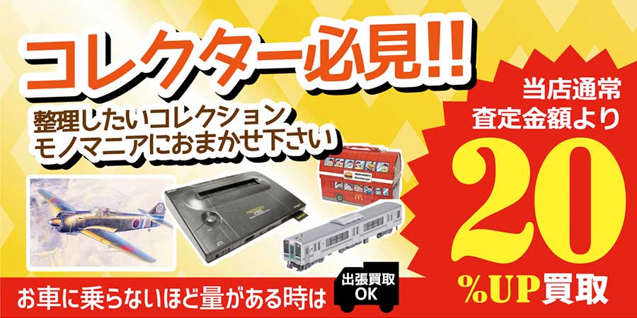 モノマニア通常査定金額より最大で20%アップで買取りいたします!