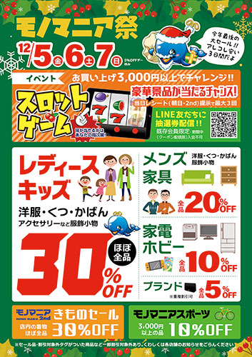 毎年12月、モノマニア朝日店恒例のお買い得イベント🐳モノマニア祭🐳
